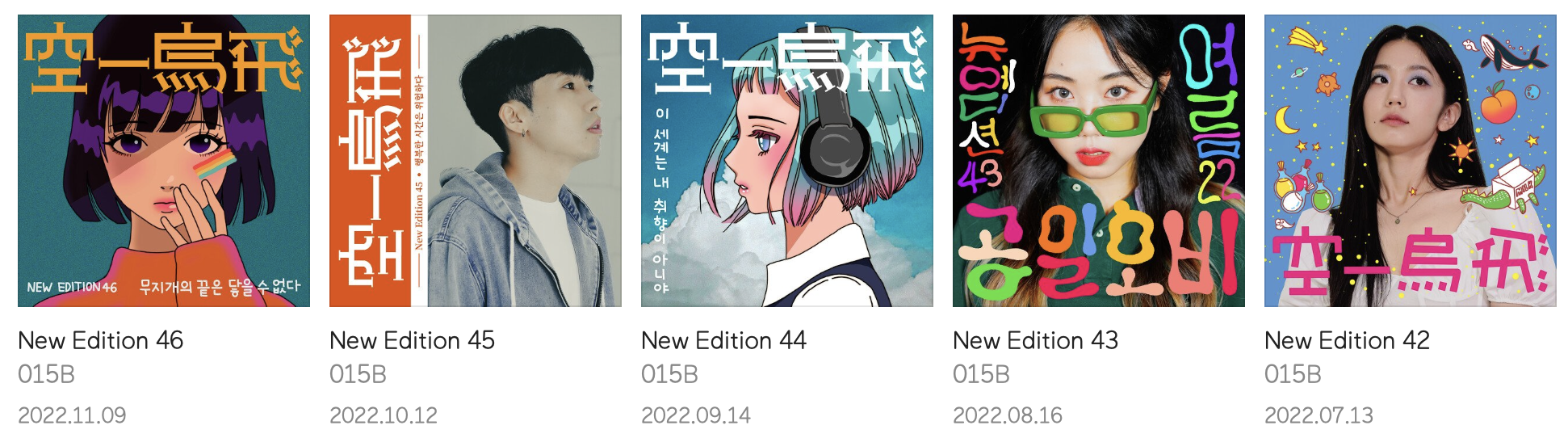 💛 이 글은 015B의 프로젝트 앨범 New Edition의 시리즈를 살펴보고 곡을 추천합니다. 💛